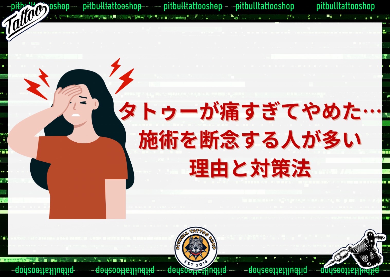 タトゥーを入れるとき、誰もが一度は心配するのが「痛み」です。デザインや大きさに魅力を感じていても、実際に施術台に座り針の刺激を体験した瞬間に「想像以上に痛すぎる…」と感じ、途中でやめてしまう人も少なくありません。この記事では、「痛すぎてタトゥーをやめた」というケースがなぜ起こるのか、そしてそれを避けるための工夫について解説します。
