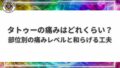 タトゥーを入れたいと思ったとき、多くの人がまず気になるのが「痛さはどんな感じなのか」という点です。経験者の声を集めると、痛みの感じ方は人によって異なるものの、多くの共通した“例え”があります。本記事では、タトゥーの痛さをどのように表現する人が多いのか、また痛みを和らげるための工夫についても解説します。