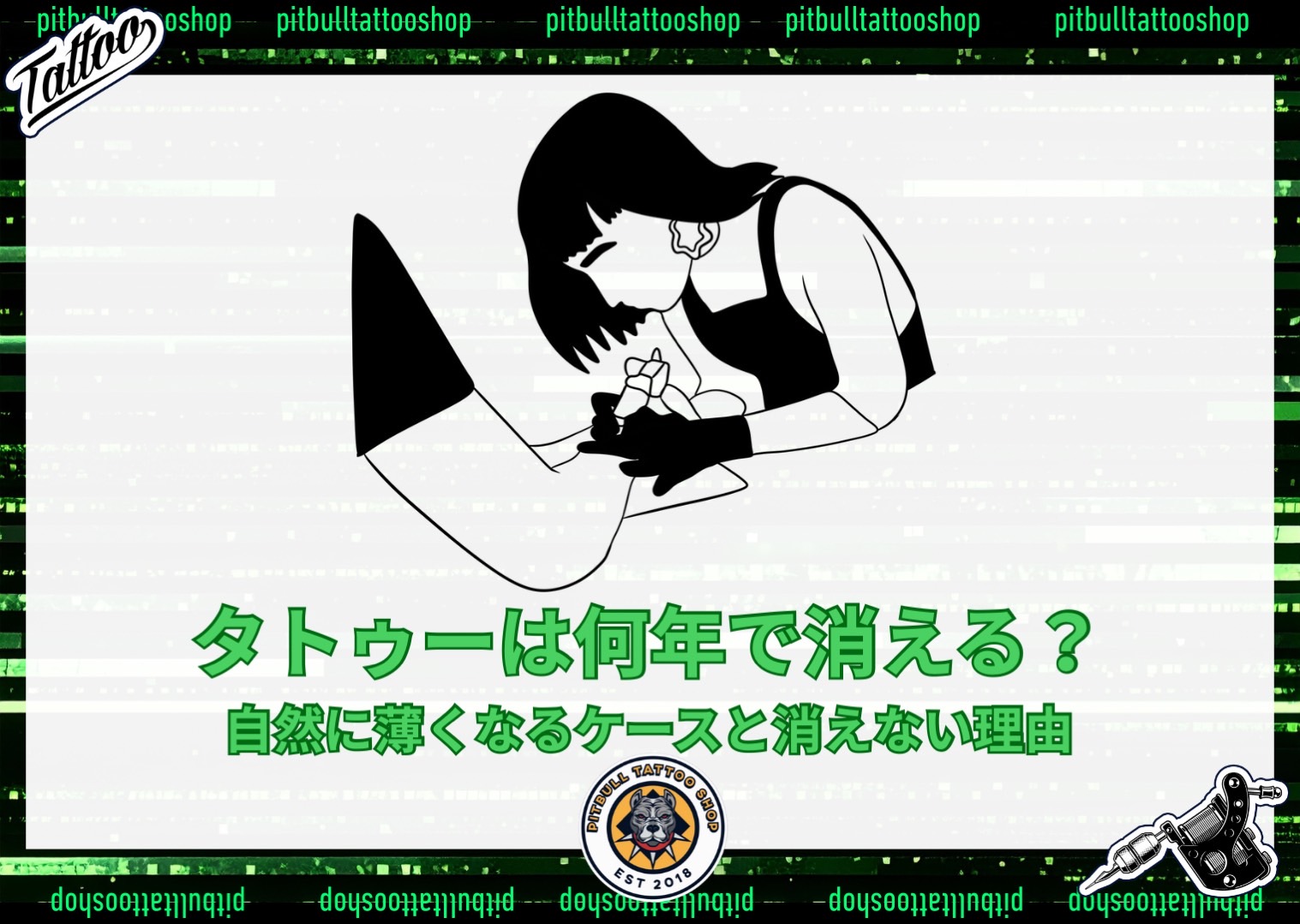 タトゥーは基本的に 一生残るもの であり、「何年で消える」という明確な期限はありません。ただし、紫外線や体質などによって徐々に薄くなるケースはあります。完全に消したい場合は、医療的な施術が必要になります。