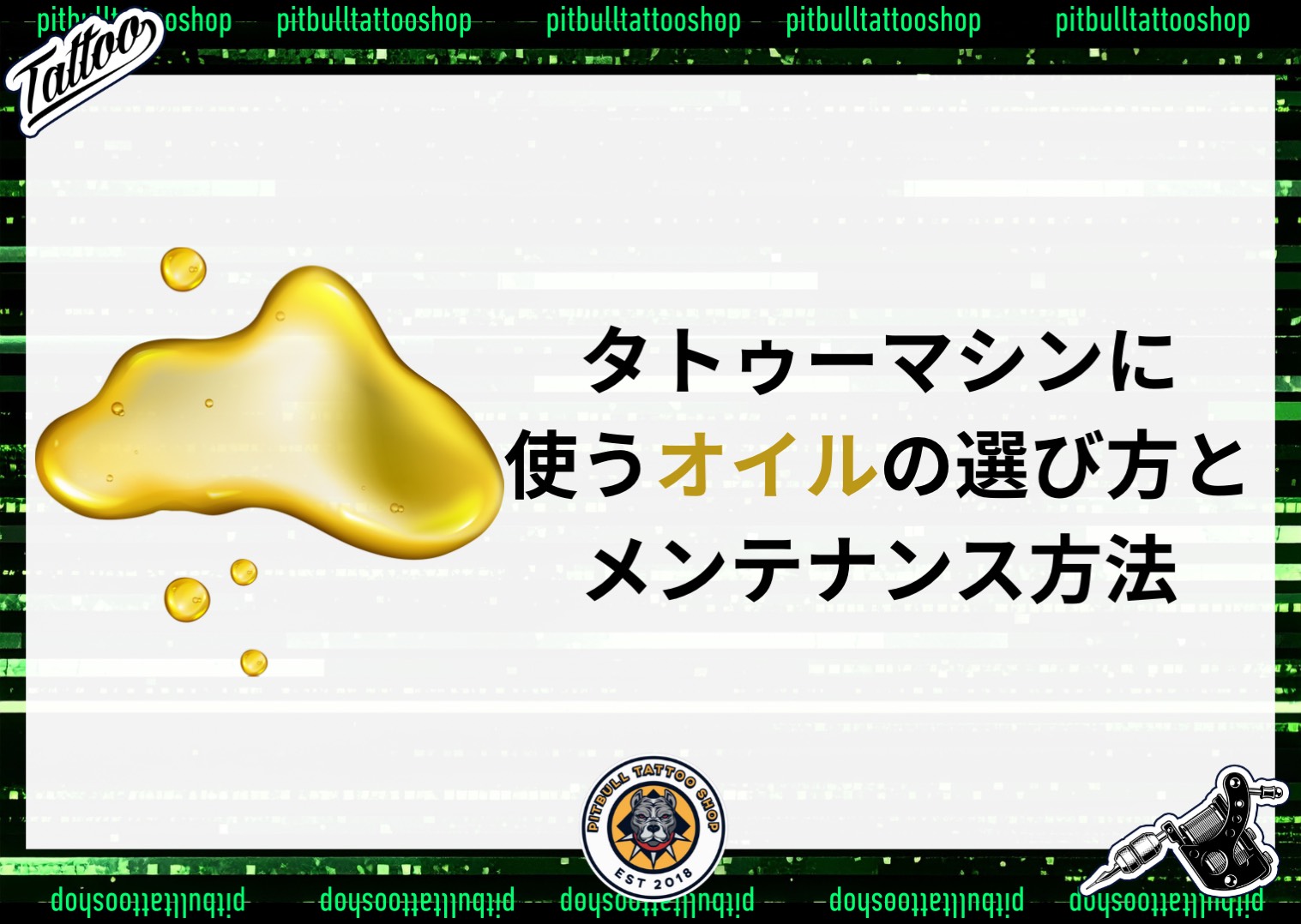 タトゥーマシンは繊細な精密機器であり、適切なメンテナンスが長寿命とパフォーマンス維持の鍵になります。その中でも「オイルメンテナンス」は特に重要なポイントです。今回は、タトゥーマシンに使用されるオイルの役割、種類、使い方について詳しく解説します。