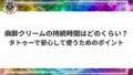 タトゥー麻酔クリームは、痛みを軽減し施術を快適にする心強いサポートアイテムです。正しく使えば、初心者でも安心してタトゥーを楽しむことができます。特に痛みが強い部位や長時間の施術には大きな効果を発揮するでしょう。タトゥーをより前向きに楽しむために、麻酔クリームの活用を検討してみてはいかがでしょうか。