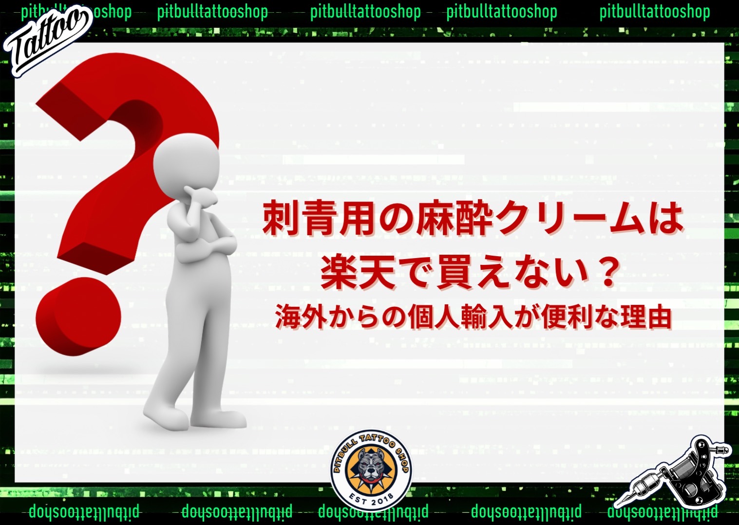 刺青用の麻酔クリームは、日本国内(楽天・薬局など)では購入できないのが現状です。