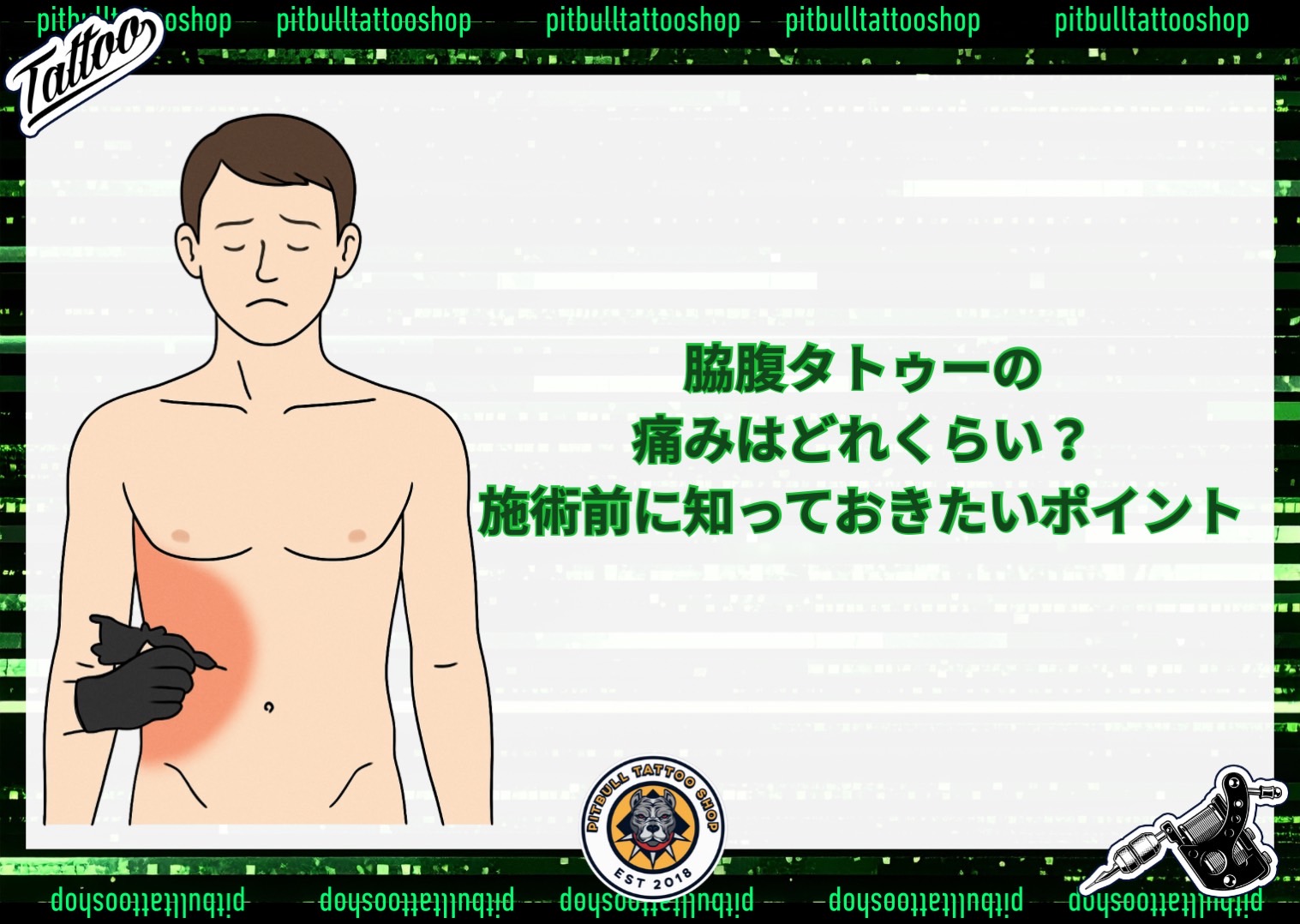 タトゥーの人気部位のひとつに脇腹(わき腹)があります。体のラインに沿ってデザインできるため、美しく流れるようなアートが映える場所です。しかし、脇腹は「タトゥーの中でも特に痛い部位」として知られており、初めての人にはハードルが高い部位でもあります。ここでは、脇腹タトゥーの痛みの特徴や軽減方法、注意点を詳しく解説します。