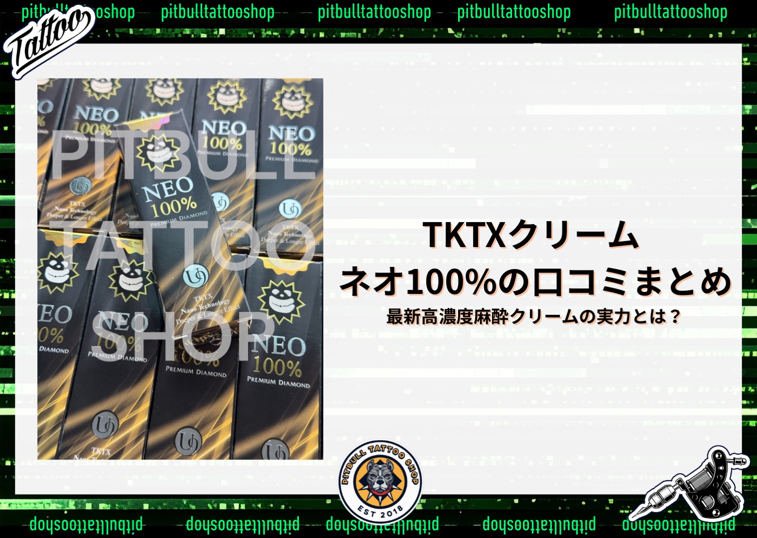 タトゥーや脱毛、ピアスなどの施術で痛みに悩む方に人気なのが、近年注目を集めている 「TKTXクリーム ネオ100」 です。従来のTKTXシリーズよりもさらに強力な成分を配合し、100%濃度を誇る最新タイプとして、多くのユーザーが利用しています。実際の使用者の口コミから、その効果や評判を詳しく見ていきましょう。