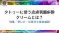 TKTXは皮膚表面に塗布して使用する外用麻酔クリームです。施術中の痛みを和らげます。持続時間はおよそ2〜5時間で、タトゥー、レーザー、脱毛など幅広く使われています。